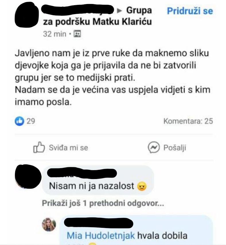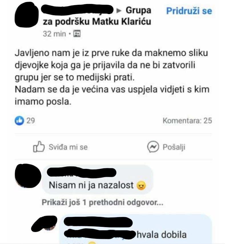 PREDMET: FACEBOOK GRUPA ZA PODRŠKU MATKU KLARIĆU