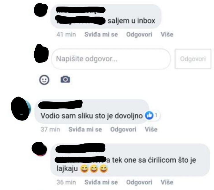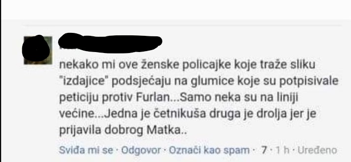 Budući da je to apsolutno netočno u prilogu smo Vam dostavili dvadeset snimki zaslona mobitela iz navedene grupe gdje se jasno i nedvojbeno vidi da je objavljeno ime i prezime jedne od policijske službenice/prijaviteljice te njena fotografija, s kojom nitko do danas nije obavio razgovor, čak niti nakon našeg dopisa na koji nam odgovarate, a kamoli da joj je pružio podršku i pitao je li imala neugodnosti zbog objave njenog imena i prezimena te fotografije. Naime, iz komentara u Facebook grupi jasno da zaključiti da je imala i više nego samo neugodnosti.